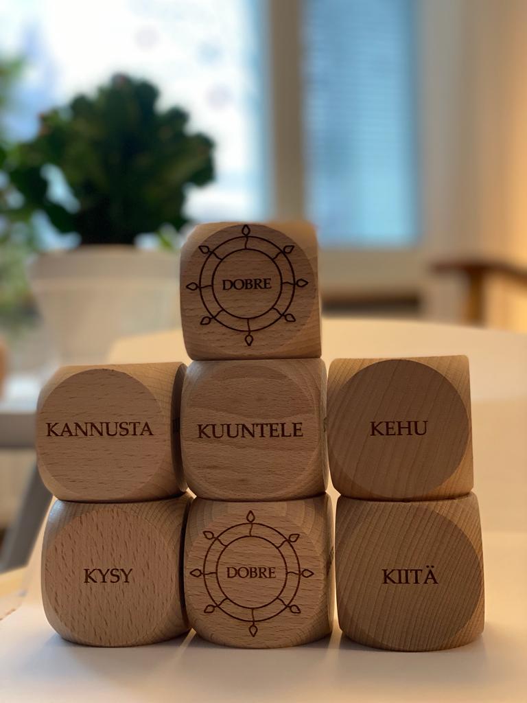 Dobre©-noppa kannustaa työyhteisön jäseniä tuomaan esiin myönteisiä ja positiivisia kommentteja toisistaan. Noppa antaa myös mahdollisuuden välittää kiitosta ja arvostusta, jota kaikki arvostavat. Noppa tuo lisäksi iloa ja pelleilyä työyhteisöön, mikä on hyödyllistä vahvistamaan myönteistä työilmapiiriä.